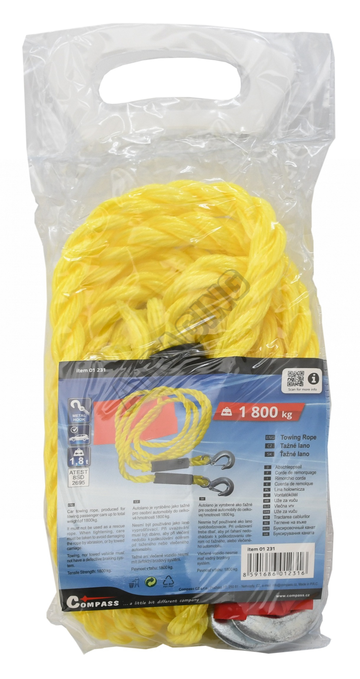 Lano je určeno k vlečení motorových vozidel do okamžité hmotnosti 1 800 kg. Zakončeno háky z kovu, v
