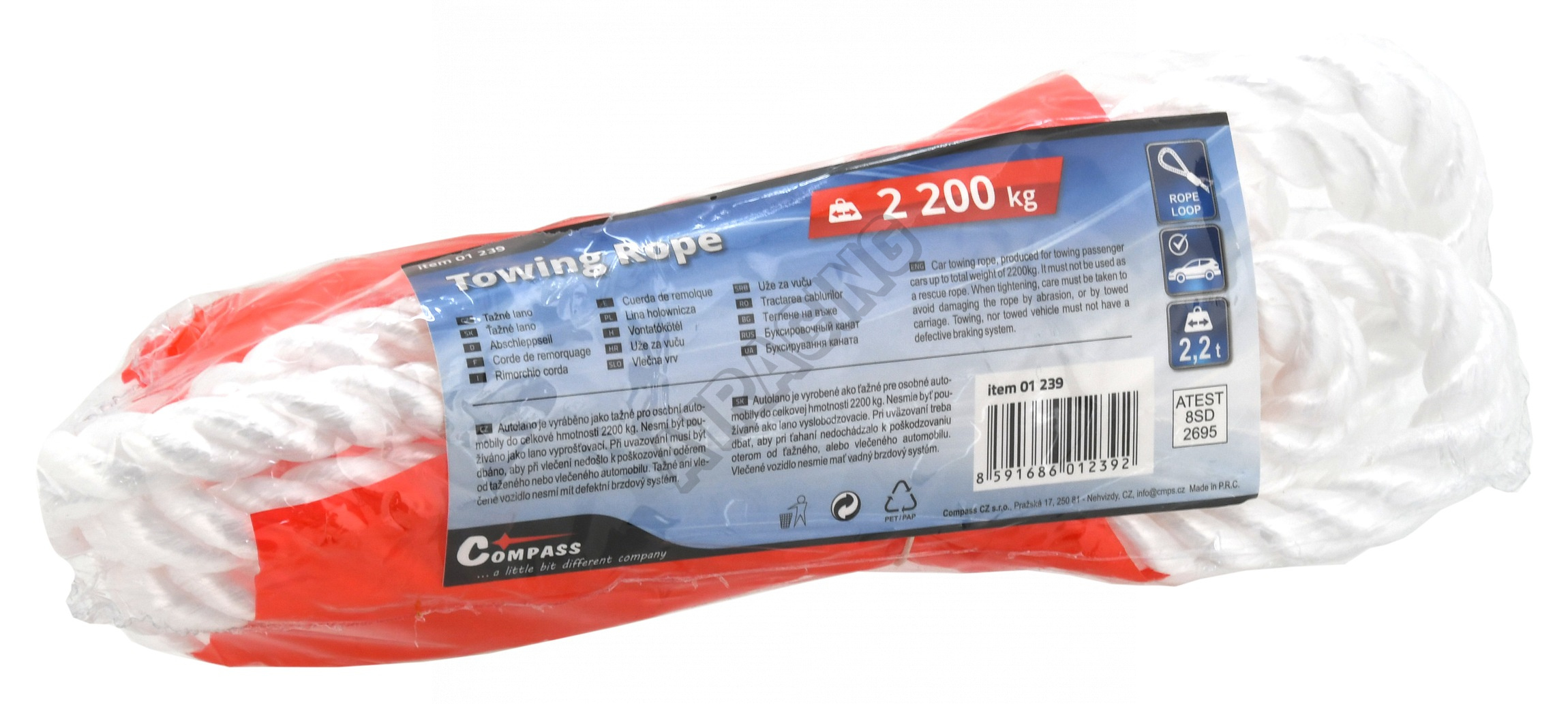 Tažné lano pro osobní automobil do hmotnosti 2200 kg.