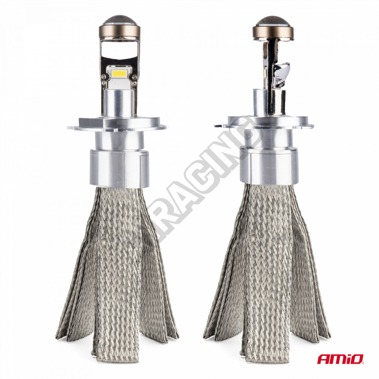 Sada LED žárovek H4 s vestavěnou čočkou, produkt nové generace se zvýšeným výkonem a barevnou teplotou 6000K.