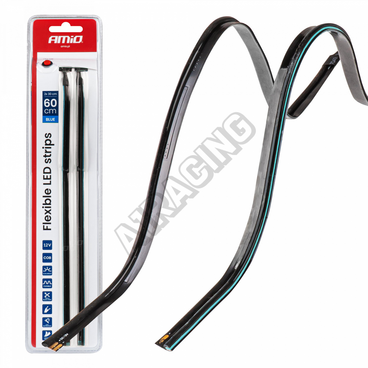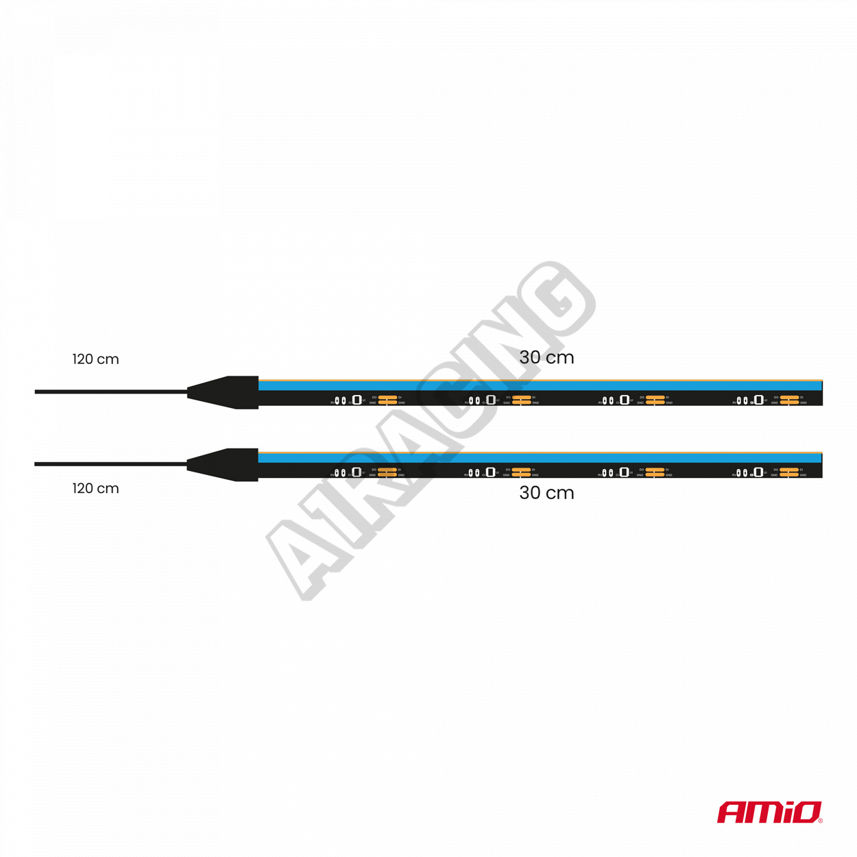 LED COB pásky do auta boční modré 2x30cm 12V AMIO-04578