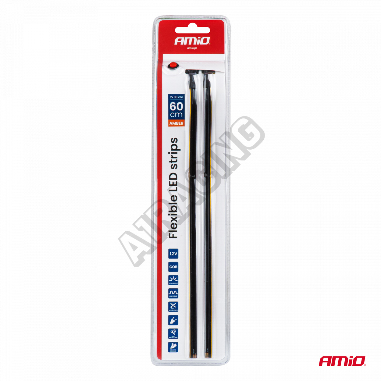 LED COB pásky do auta boční oranžové 2x30cm 12V AMIO-04574