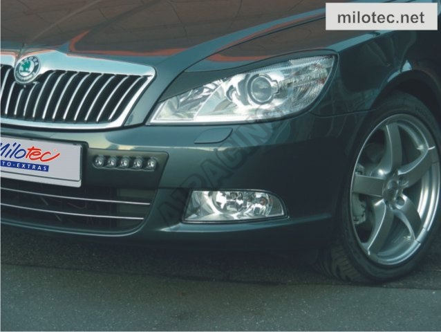Zástavba LED denních + pozičních světel s krycím rámečkem je určena pro vozy Škoda Octavia II. Lim./Combi. Facelift. Krycí plasty jsou vyrobeny z černého ABS/ASA - tento materiál je UV stabilní.