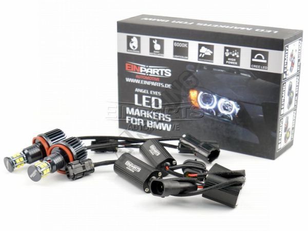12 LED CREE H8/120W žárovky s vlastním čipem určené pro modely BMW od roku výroby 2007 s originálními Angel Eyes kroužkami používanými jako denní svícení. Je to přímá náhrada za originální žárovky, které většinou svítí do žluta a nebo nedosahují svítivosti jako u novyých BMW. Tyto žárovky patří k nejsilnějším na trhu, co můžete zakoupit. Vestavěná elaktronika vám zaručí bezproblémový chod bez chybových hlášení na palubním počítači.