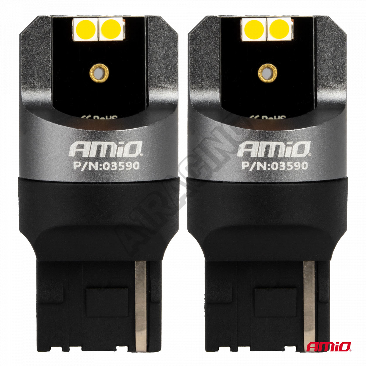 Automobilové LED žárovky značky AMiO jsou moderním řešením využívajícím technologii LED diod. Použité diody emitují bílou barvu světla a jsou bez efektu blikání. Vysoká kvalita provedení zaručuje životnost žárovek až 50 000 hodin a speciální napájecí systém nevyžaduje úpravu elektrické instalace v automobilu, což umožňuje bezproblémovou montáž v tradičních svítidlech, kde byly dříve používány běžné žárovky.