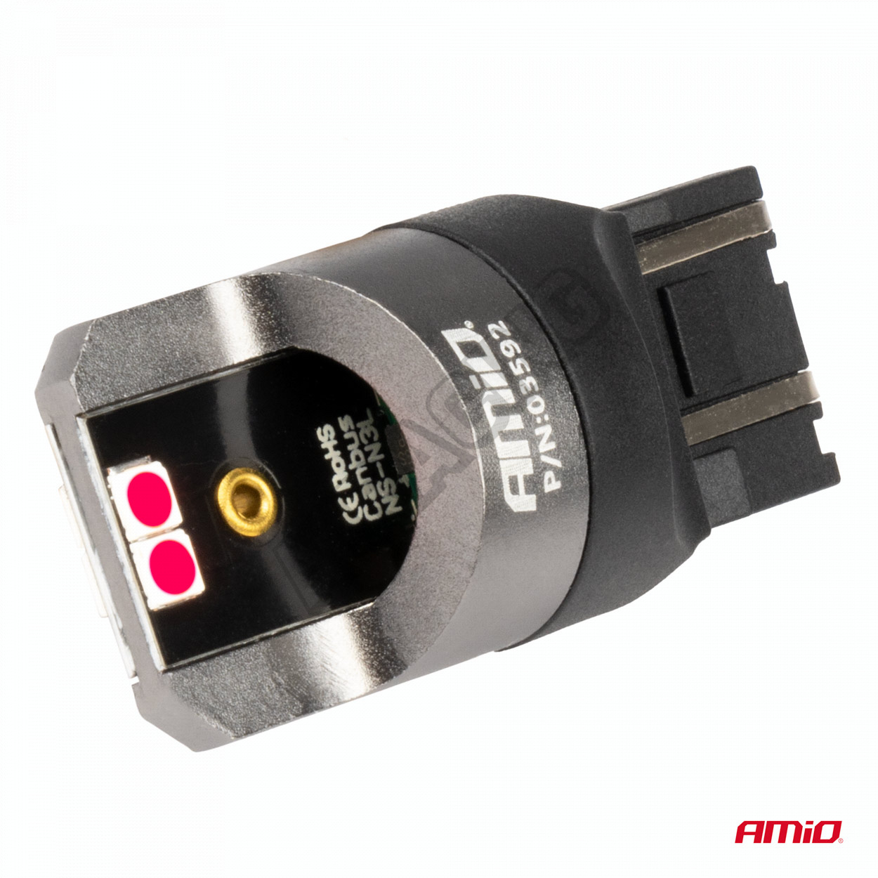 Automobilové LED žárovky značky AMiO jsou moderním řešením využívajícím technologii LED diod. Použité diody vyzařují červenou barvu světla a jsou bez efektu blikání. Vysoká kvalita provedení zaručuje životnost žárovek až 50 000 hodin a speciální napájecí systém nevyžaduje úpravu elektrické instalace v automobilu, což umožňuje bezproblémovou montáž v tradičních svítidlech, kde byly dříve používány běžné žárovky.