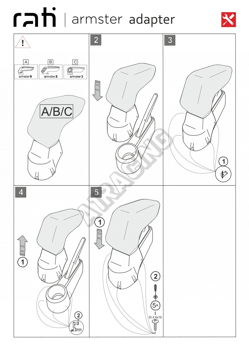 Součástí balení je adaptér vyrobený přesně na konkrétní vůz a montážní sada. Samotná montáž je velice snadná pomocí šroubků do středového tunelu. Loketní opěrka nabízí úložný prostor na mobil, peněženku, cennosti, apod. Hlava loketní opěrky je polohovatelná, aby se přizpůsobila ideálně svou výškou každému řidiči.