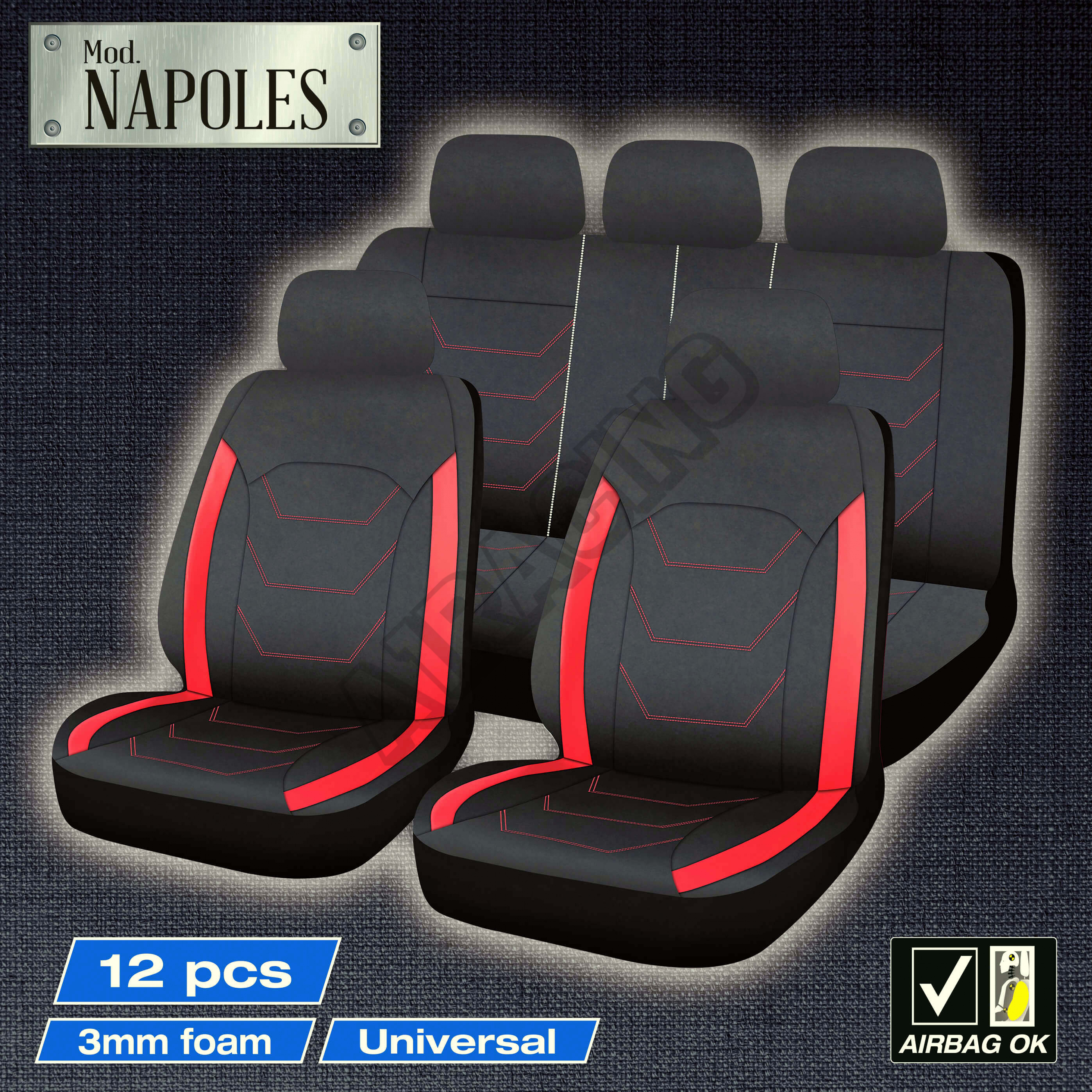 Luxusní univerzální autopotahy Napoles černo červené 12 ks