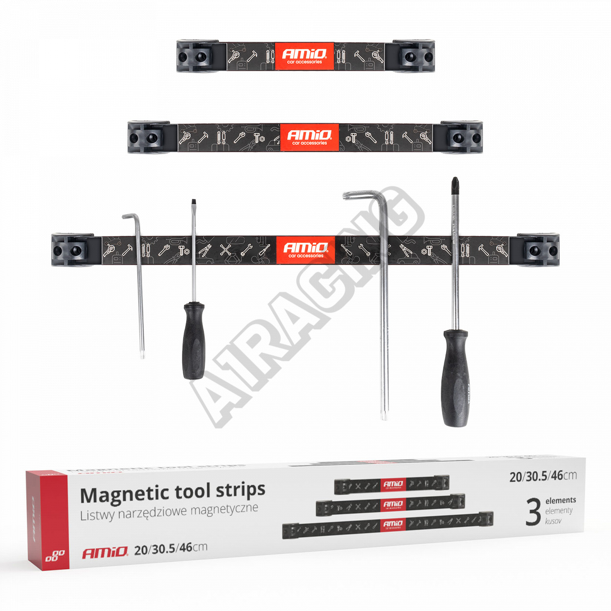 Magnetické lišty na nářadí 1x20cm 1x30,5cm 1x46cm sada AMIO-04263