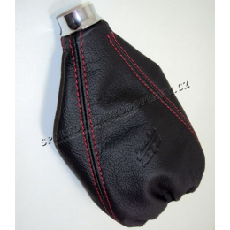 Manžeta řadící páky kožená sporting black/red s alu kroužkem - pasuje velmi dobře hlavně pro vešker