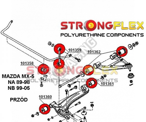 Mazda MX5 1989-98 StrongFlex Sport sestava silentbloků jen pro přední nápravu 14 ks