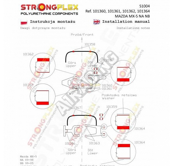 Mazda MX5 1989-98 StrongFlex Sport sestava silentbloků jen pro přední nápravu 14 ks obsahuje: