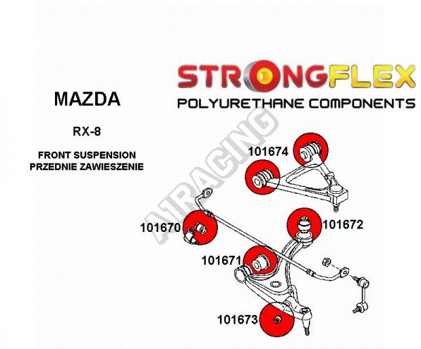 Mazda RX8 StrongFlex Sport sestava silentbloků jen pro přední nápravu 12 ks obsahuje: