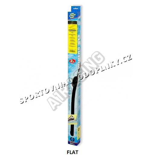 Stěrače FLAT SET (sada 2 ks na celé auto). Vysoce kvalitní pružný člen plochého stěrače zajišťuje stejnoměrný tlak grafitového břitu v celé jeho délce, což zamezuje rozmazávání nečistot a vytváření pruhů.