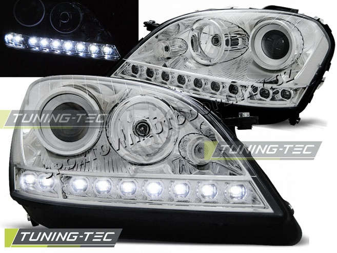 MERCEDES W164 ML M-KLASA 2005-07 PŘEDNÍ ČÍRÁ SVĚTLA DAYLIGHT LED CHROME