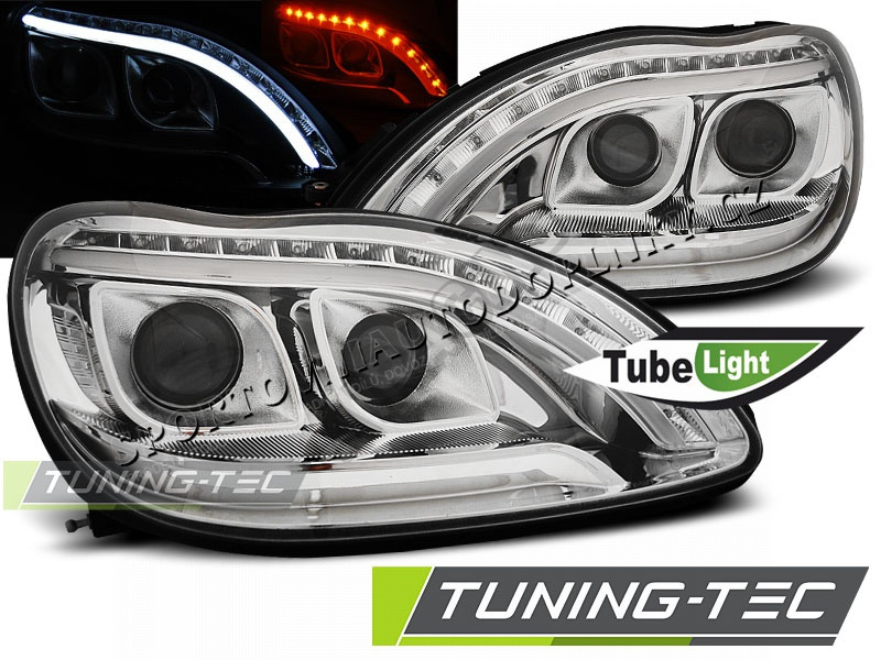 Mercedes W220 S-Klasa 09.1998-05.2005 přední čirá světla LED TubeLight chrome
