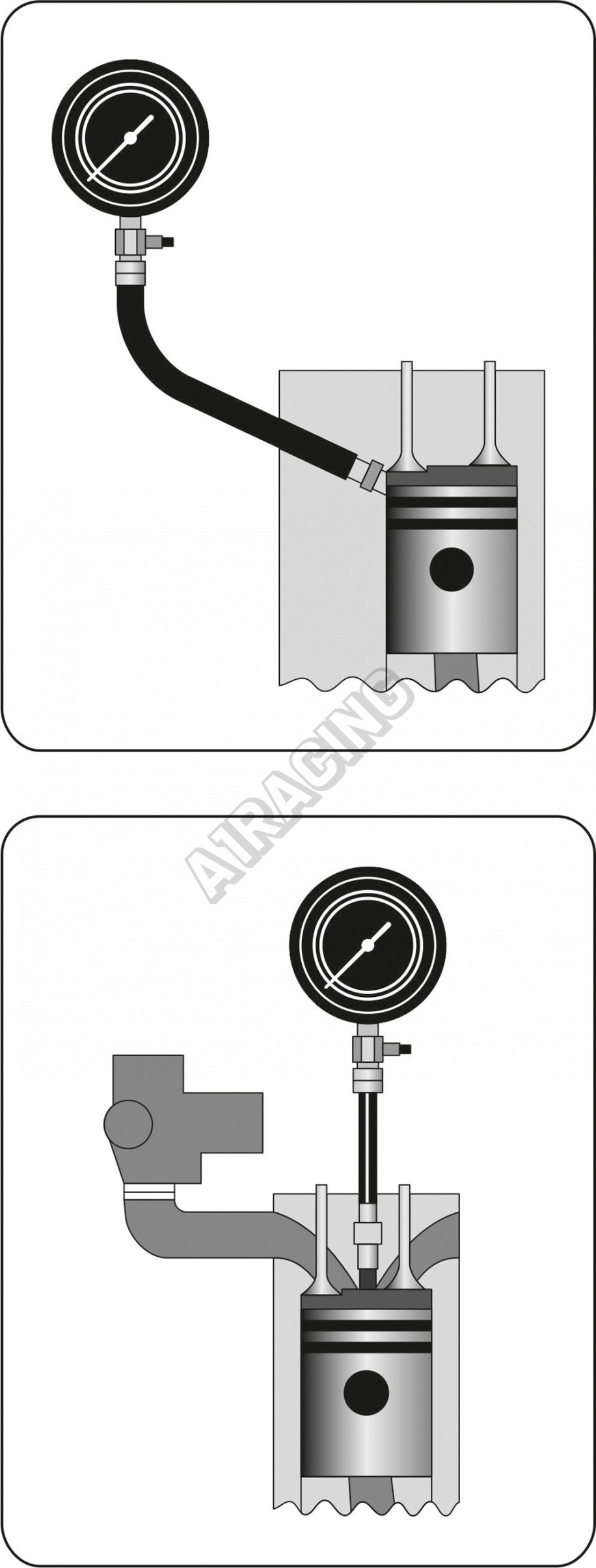 Zařízení se umístí místo zapalovací svíčky motoru a určí se tlak pro daný válec.