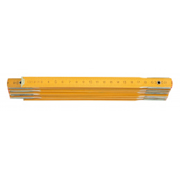 Klasický dřevěný skládací metr vyrobený z bukového dřeva, lakovaná žlutě, chráněná proti působení vlhkosti.