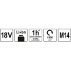 Dostupné náhradní baterie: 2 Ah (YT-82842), 3 Ah (YT-82843), 4 Ah (YT-82844) a 6 Ah (YT-82845)