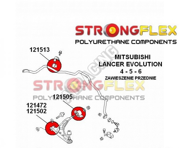 Mitsubishi Lancer Evolution Evo IV-V-VI StrongFlex Sport sestava silentbloků jen pro přední nápravu 6 ks obsahuje: