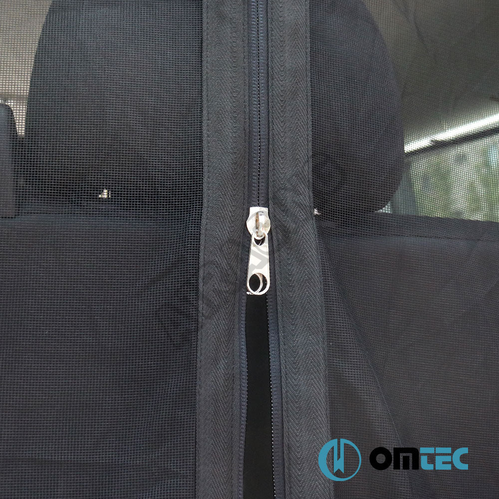 Pevná moskytiéra se zesílením po celém obvodu a zipem pro otevření ve střední části.