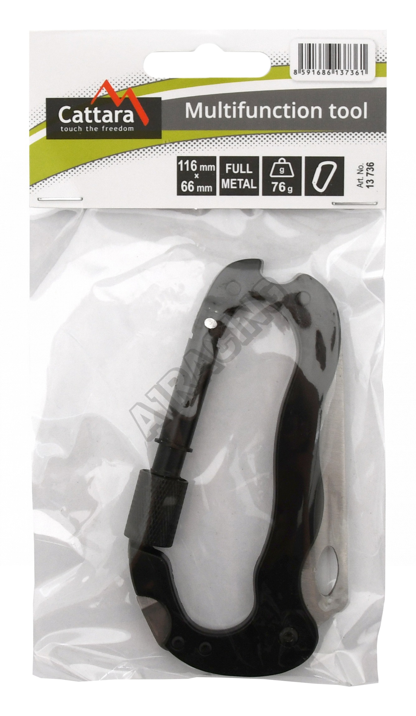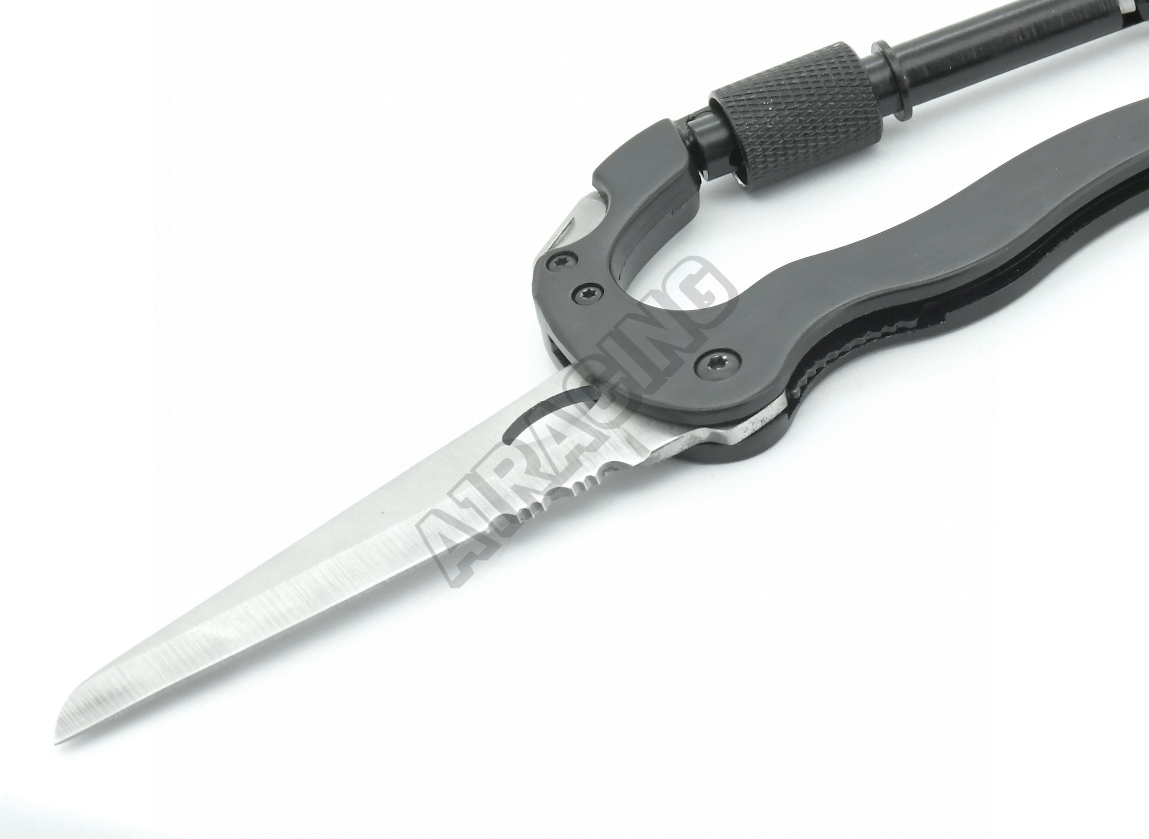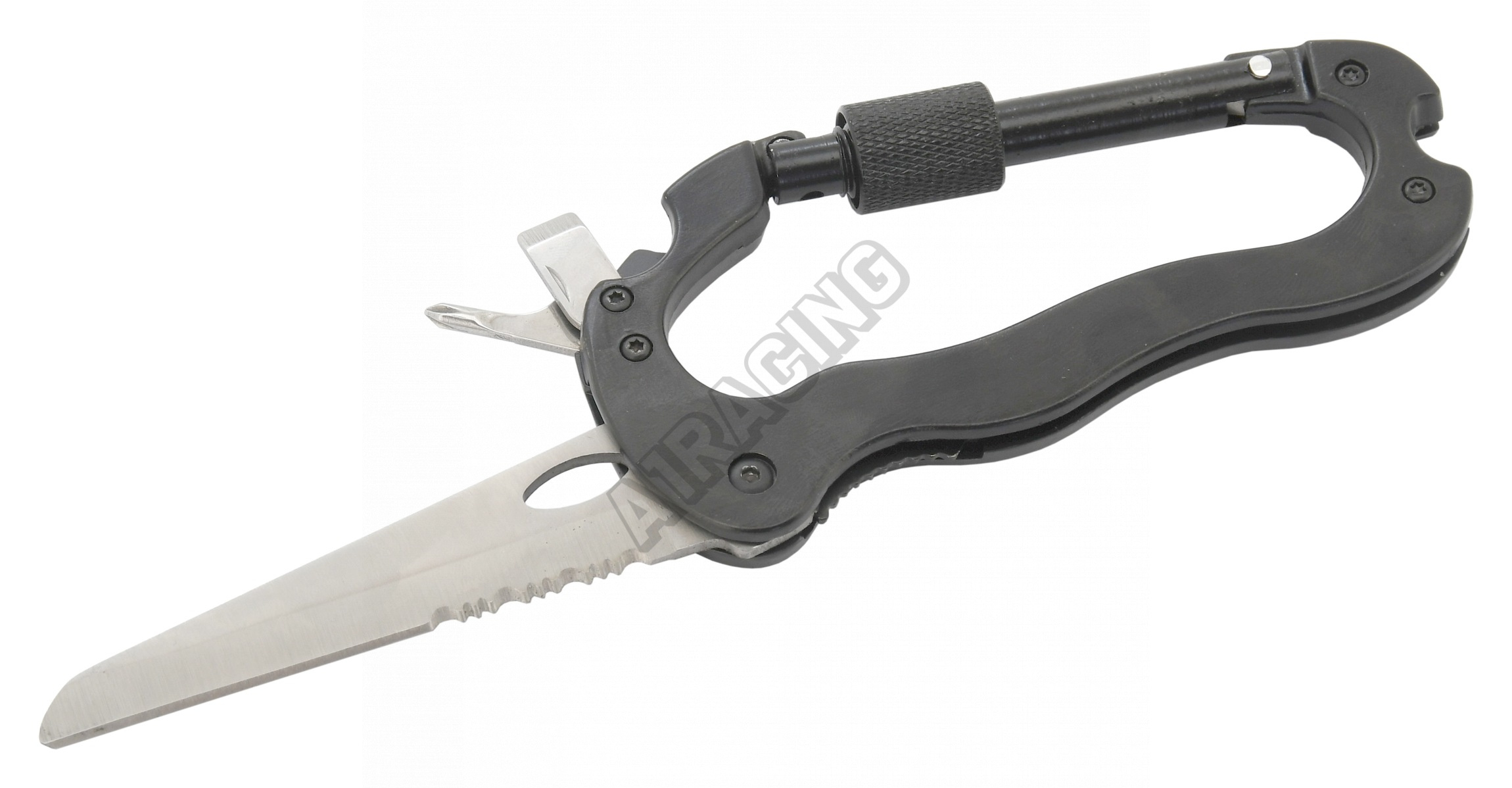 Karabina je opatřena nožem délky 7,5 cm s pilkovou částí, nůž je opatřen pojistkou, takže nehrozí jeho nechtěnné složení. V horní části jsou potom k dispozici šroubovací nástavce křížový a plochý.
