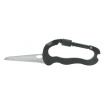 Hliníková multifunkční karabina opatřená šroubovací, převlečnou pojistkou, pro zamezení nechtěného rozepnutí.