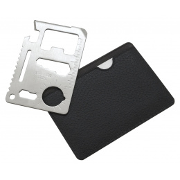 Multifunkční outdoor nástroj k přežití, poskytující 11 funkcí užitečných v různých situacích.