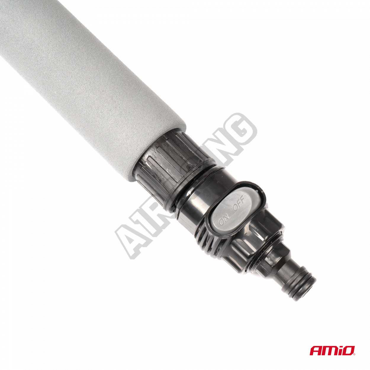Rukojeť má pěnové rukojeti, rychlý konektor pro připojení vodní hadice a průtokového ventilu.