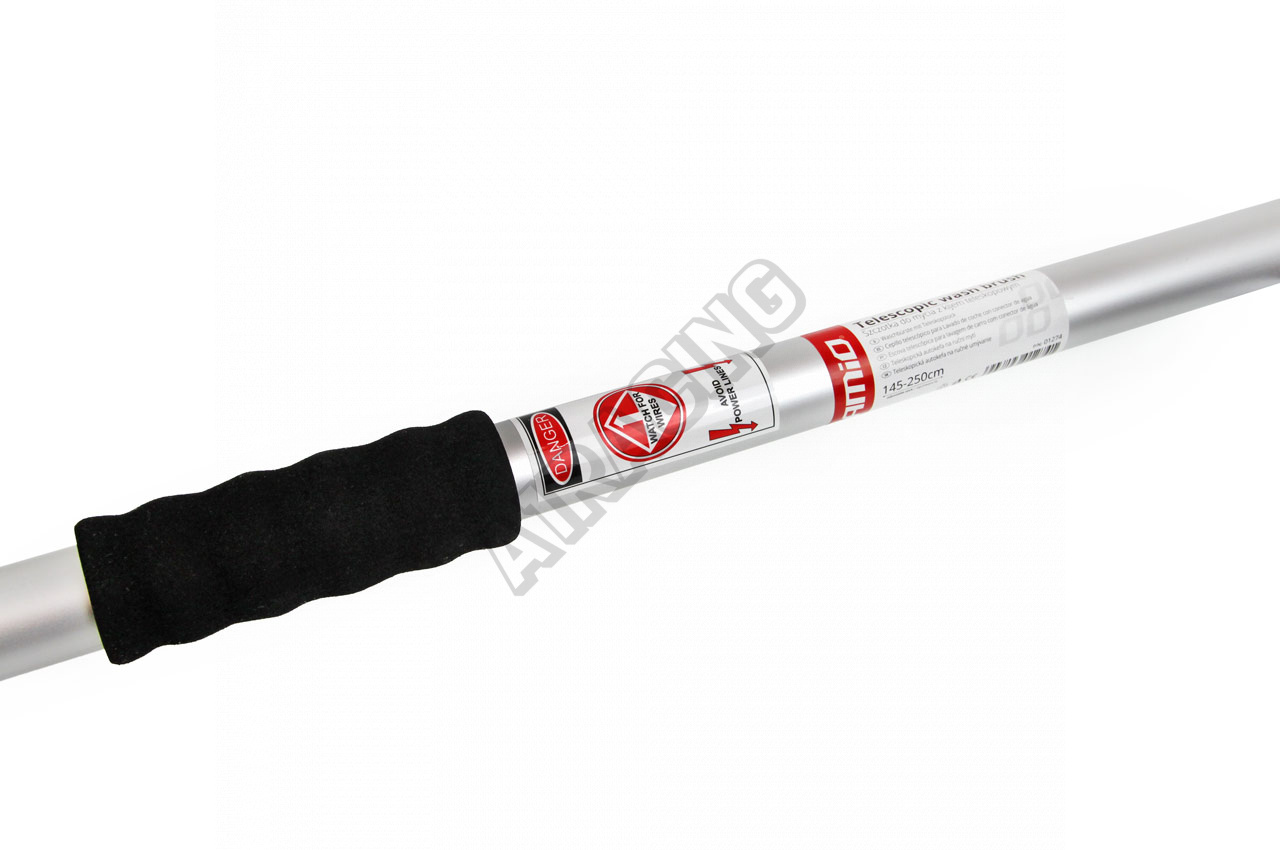 Masivní teleskopický kartáč s hliníkovou rukojetí, nastavitelná délka od 145 do 260 cm.