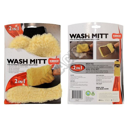 Mycí rukavice, dvě v jednom. Jedna strana z acrylové vlny pro jemné mytí nebo čistění, druhá z mřížkované struktury, která výtečně odstraňuje odolné nečistoty včetně zbytků zaschlého hmyzu. Rukavice se snadno nasune na ruku a použije k mytí vozu.