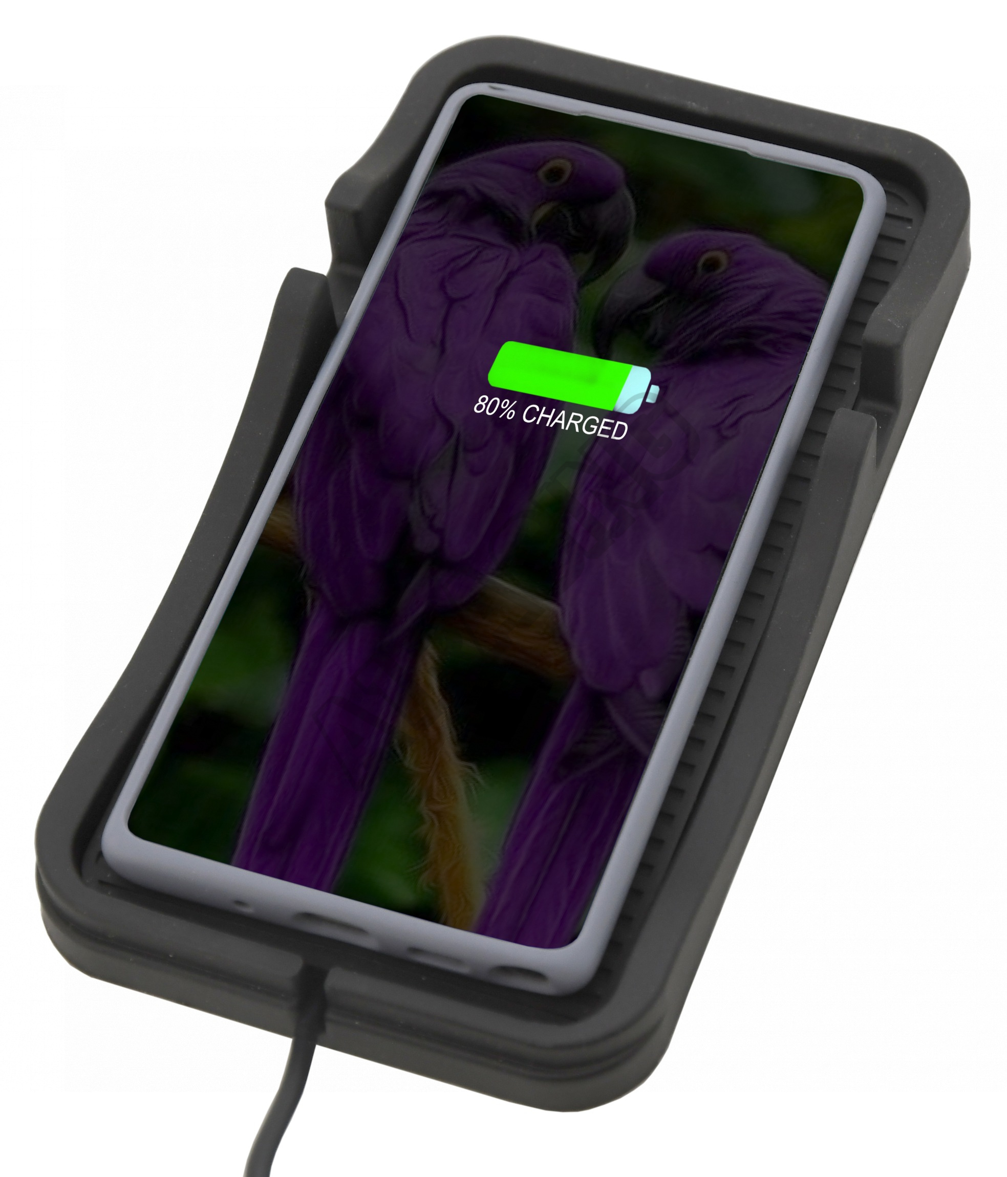 Podložka pro telefon s bezdrátovým Qi nabíjením. Technologie zařízení propůjčuje rychlé nabíjení s