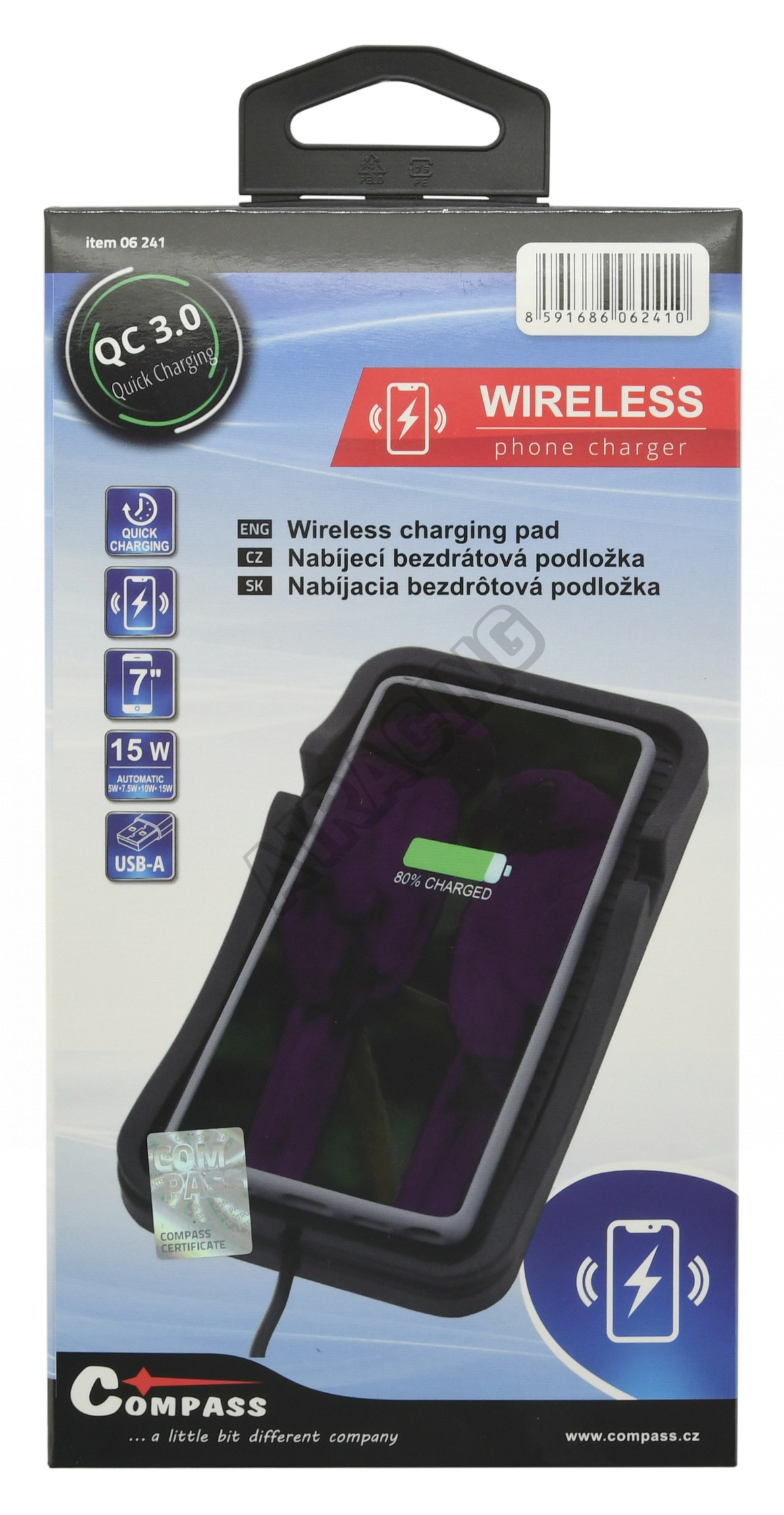Podložka je opatřena protiskluzovou úpravou a je vhodná pro telefony s max. úhlopříčkou 7". Telefon je rovněž možné postavit a podložku použít jasko držák, např. pro sledování filmů či sledování navigace.