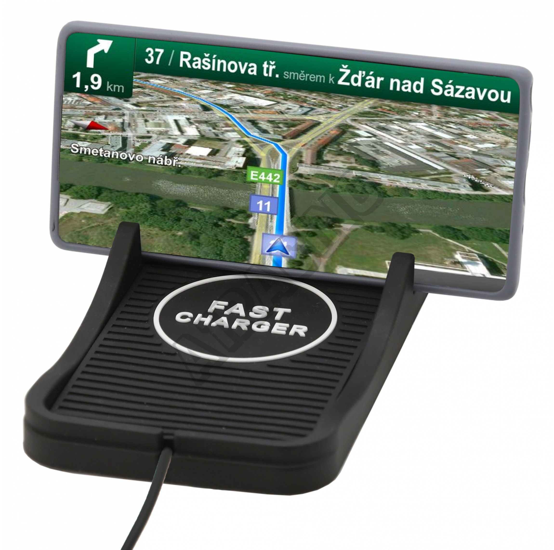 Podložka pro telefon s bezdrátovým Qi nabíjením.