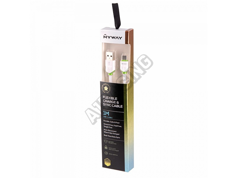 Kulatý kabel pro nabíjení a synchronizaci zařízení s konektory USB-A a USB-C. Délka kabelu 100 cm. Optimální šířka pásma až 2,4A. Zajišťuje bezpečné a optimální nabíjení zařízení. Vyrobeno z vysoce kvalitních materiálů, pletený pružný silikon.