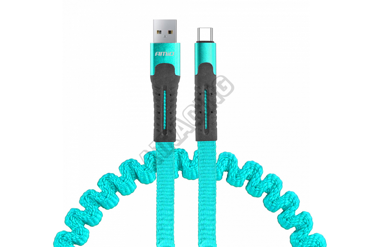 Nabíjecí kabel pružinový USB+USB-C 120cm FullLINK UC-14 Univerzální provedení pro všechny zařízení
