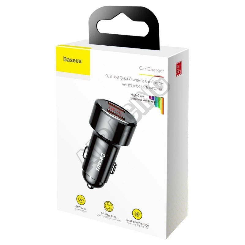 Nabíječka do auta Baseus Magic 2x USB QC 3.0 45W černá Popis výrobku Účinná nabíječka do auta Baseu
