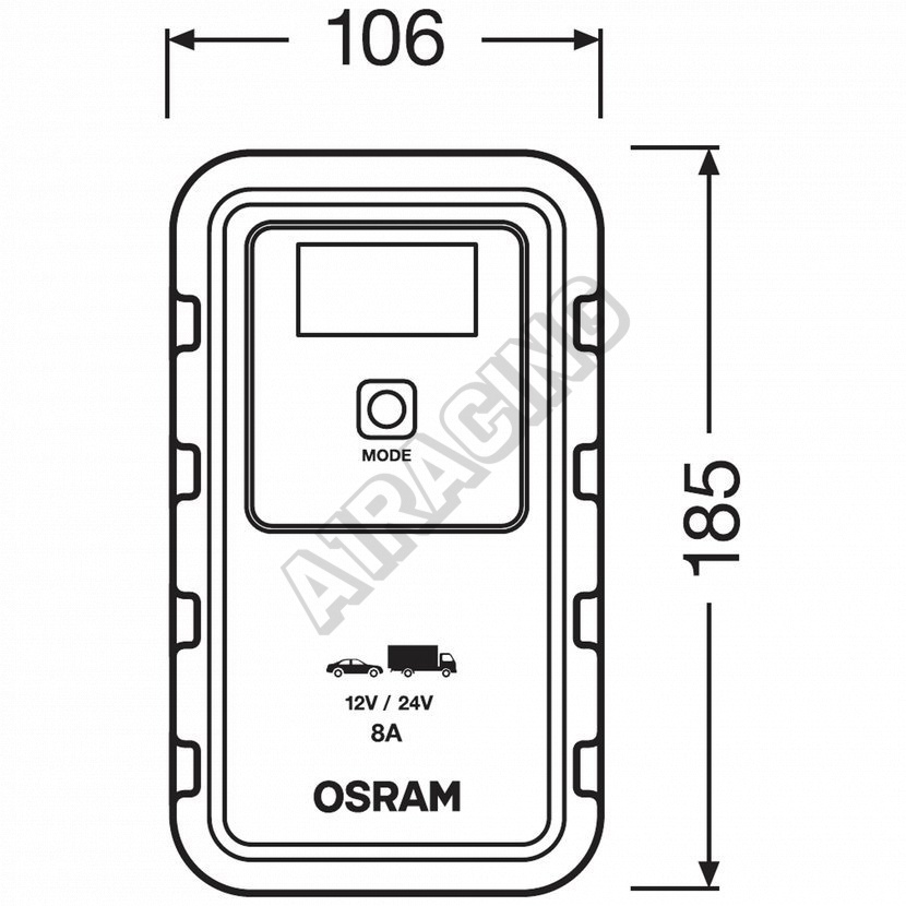OSRAM BATTERY charge 908 je inteligentní 8A nabíječka 12V a 24V akumulátorů. 12V baterie nabíjí až do 150Ah a 24V baterie nabíjí až do 70Ah. Nabíječka používá inteligentní 7stupňový nabíjecí cyklus pro lithiové baterie a 9stupňový nabíjecí cyklus pro olověné/AGM baterie. Disponuje digitálním displejem pro jednoduché ovládání a kontrolu nabíjení. Je vybavena ochranou proti přepólování a proti přepětí. Nabíječka je vhodná i pro vozidla s automatickým start-stopem. Po úplném nabití baterie se automaticky přepne do režimu dlouhodobé údržby a chrání tak baterii proti nízkým teplotám.