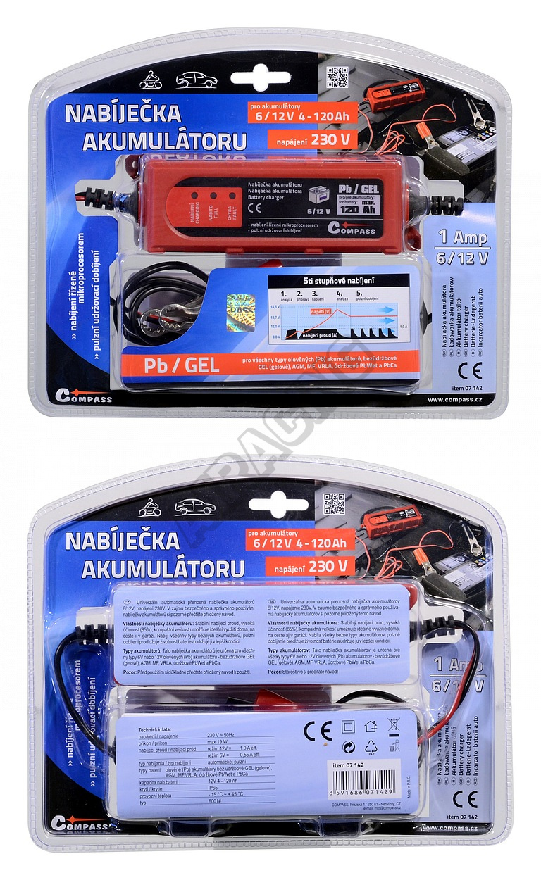 Stabilní nabíjecí proud 1000 mA a kompaktní velikost umožňuje ideální využití doma, na cestě i v garáži. Nabíjí všechny typy 6/12V olověných (Pb) akumulátorů - bezúdržbové GEL (gelové), AGM, MF, VRLA, údržbové PbWet a PbCa. Pulzní dobíjení prodlužuje životnost baterie a udržuje ji v lepší kondici.