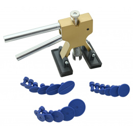 Sada obsahuje několik kusů plastových vytahovacích trnů různých rozměrů a tvarů. Trny jsou na karoserii umístěny aplikací lepidla z běžné tavné pistole (není přiložena).
