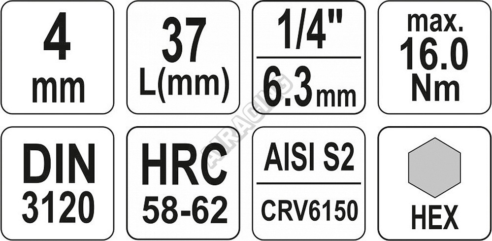 Nástavec je precizně a přesně zhotoven z pochromované oceli CrV6150 a samotný bit z nerezové oceli AISI S2 vrstvené niklem pro vysokou odolnost.