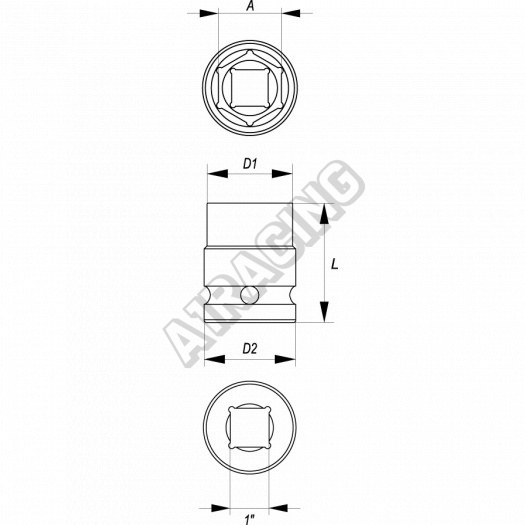 Kovaný ořech s vnitřním šestihraným profilem 28 mm a připojovacím čtyřhranem 1". Je vyroben z kvalitní chrom molybdenové slitiny oceli CrMo SCM440. Profil šestihranu používá speciální úpravu tzv. AS DRIVE, která je významně účinná pro přenos síly pro povolení a zamezuje poničení hlavy šroubu.
