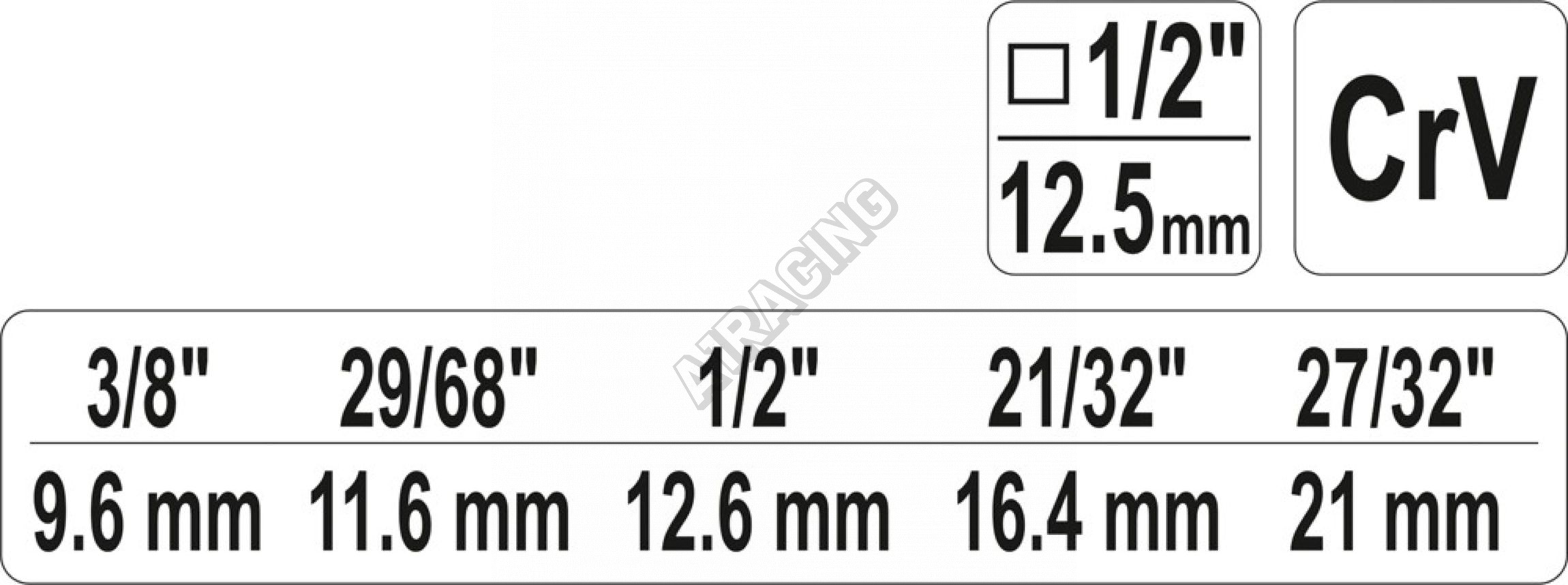 Nástavec ráčnový na radiátory s výřezem. Rozměry postupného nástavce 3/8" - 29/68" - 1/2" - 21/32" -