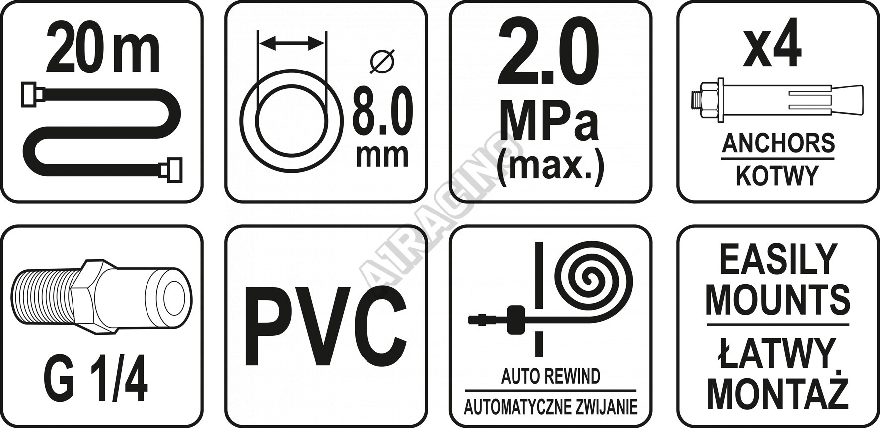 Naviják automatický se vzduchovou hadicí 8mm, 20m