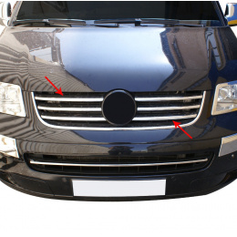 Nerez chrom lišty př. masky Omtec VW Multivan /Caravelle T5 - 6-ti dílná sada (pro vozy se 6 lamel