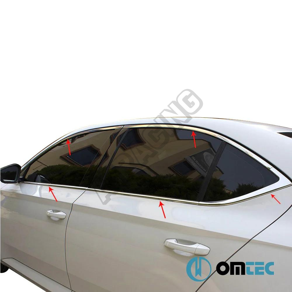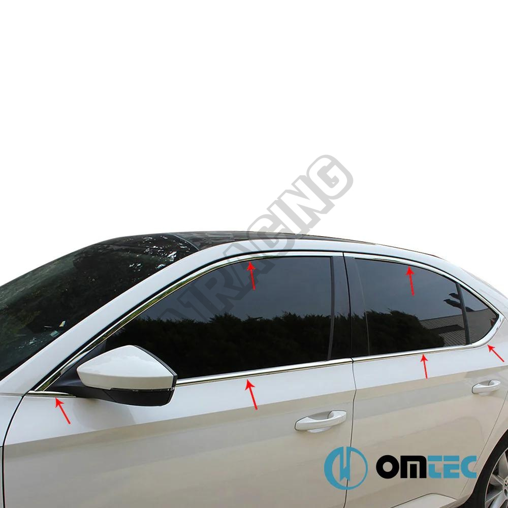 Nerez kompletní sada bočních okenních lišt 12 ks Škoda Superb III 2015+ sedan