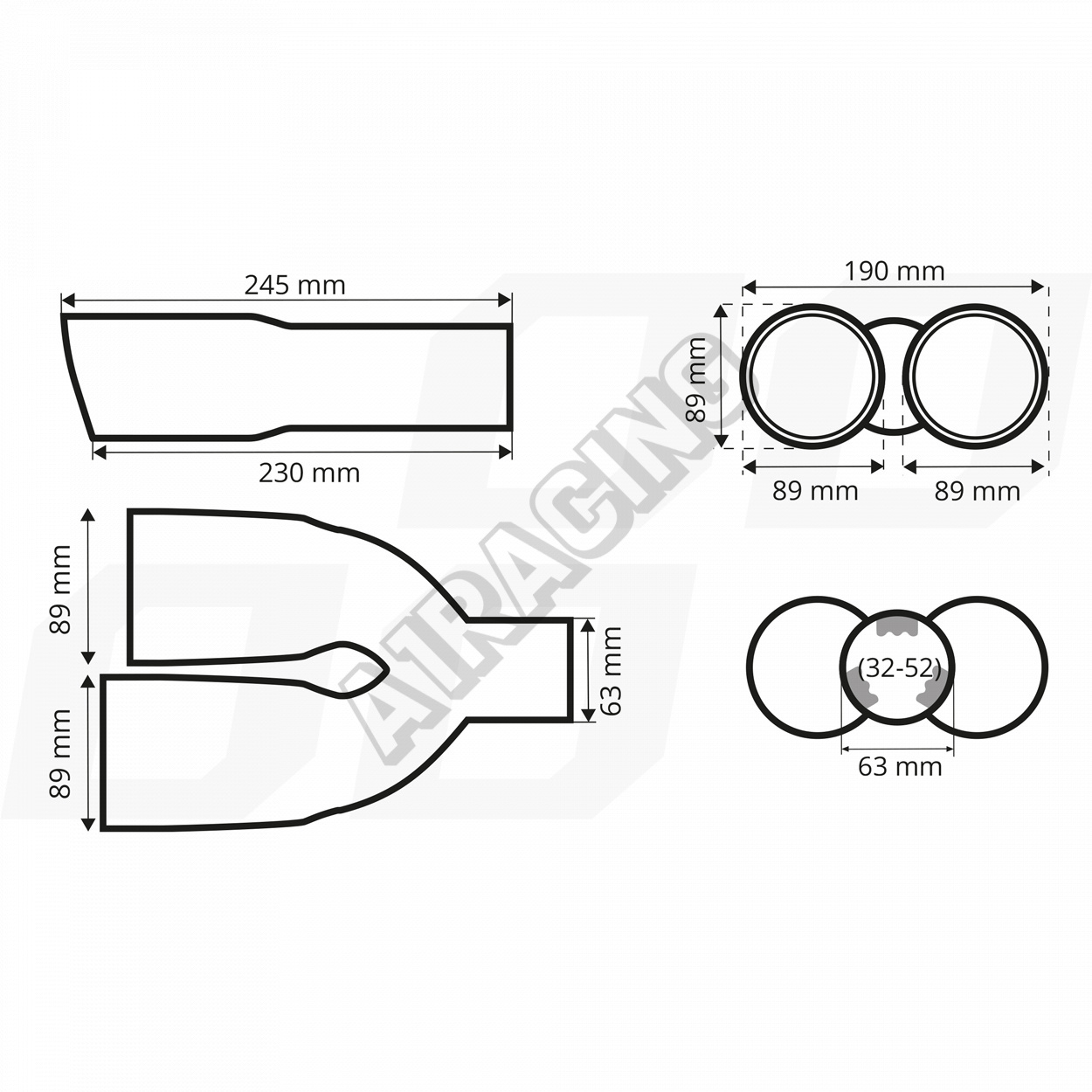 - Průměr koncovek: 89 mm