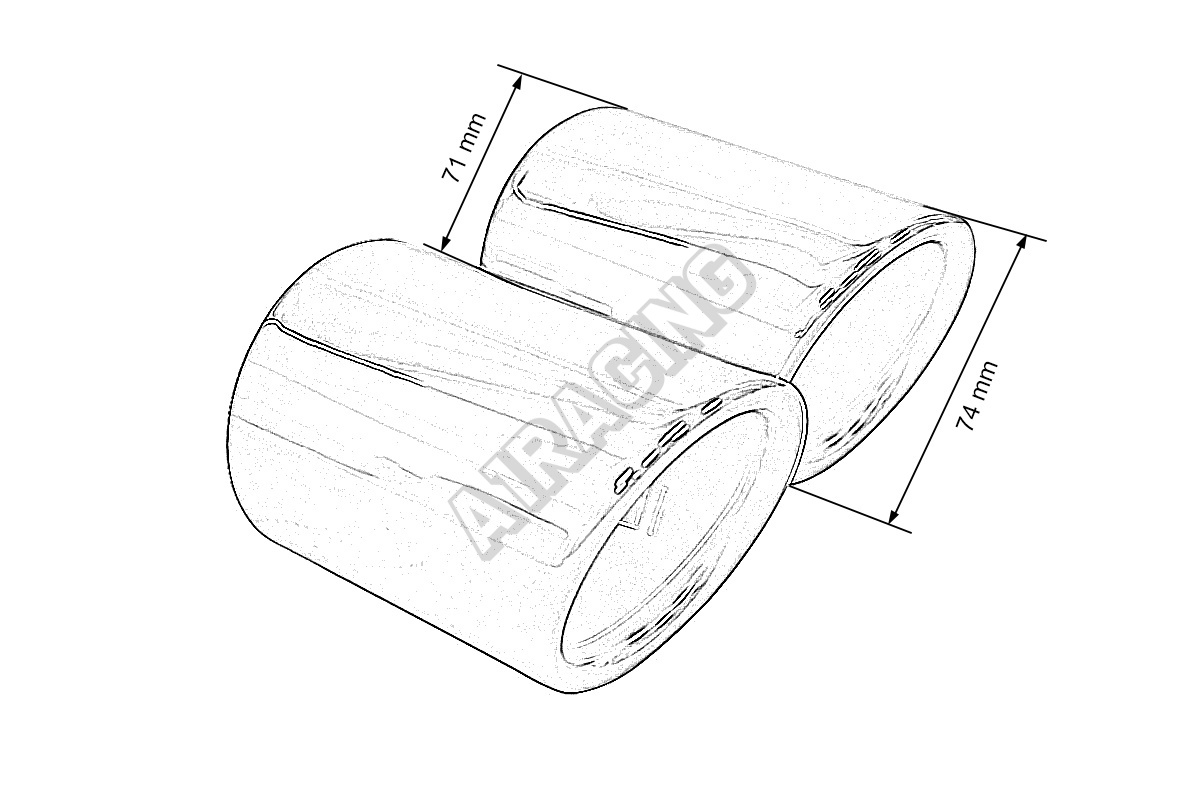 Nerez 304 provedeni s leštěnou úpravou. Tato výfuková koncovka je určena hlavě pro koncernová auta Volkswagen, Škoda, Audi, Seat (TSI , TDI), kde pomocí vnitřního uchycení koncovku jen nacvaknete, je třeba však překontrolovat vnější průměr koncovky, která musí být v rozmezí 65-68 mm,