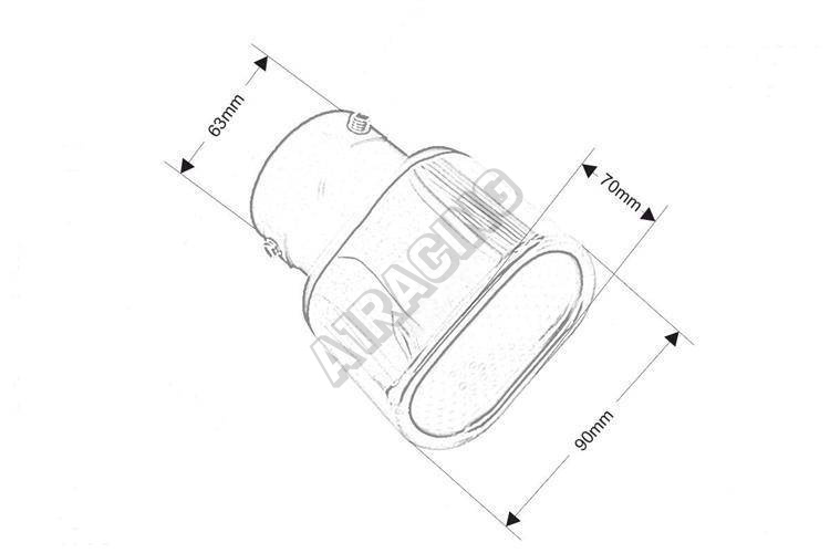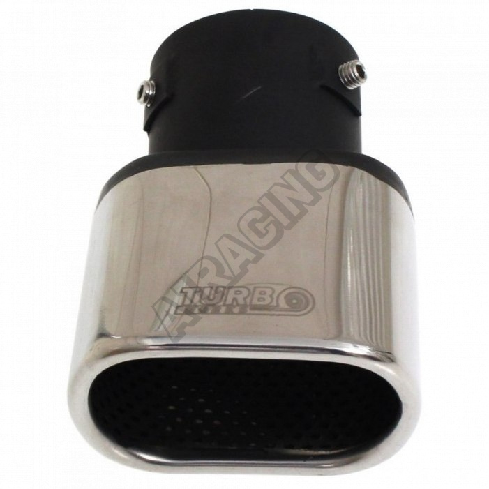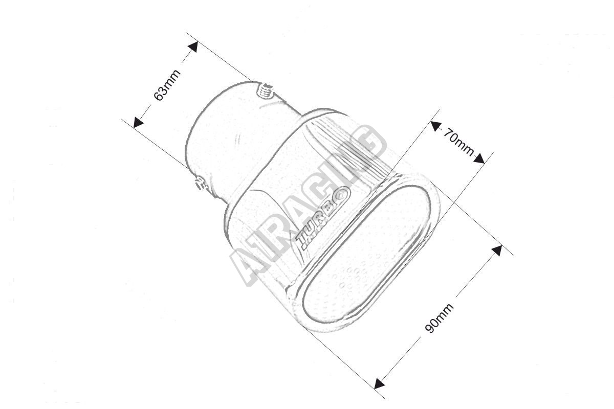 Nerez koncovka výfuku oválná 90x70 mm mírně šikmá Určeno pro nasazení pro průměry potrubí 35-60 mm,