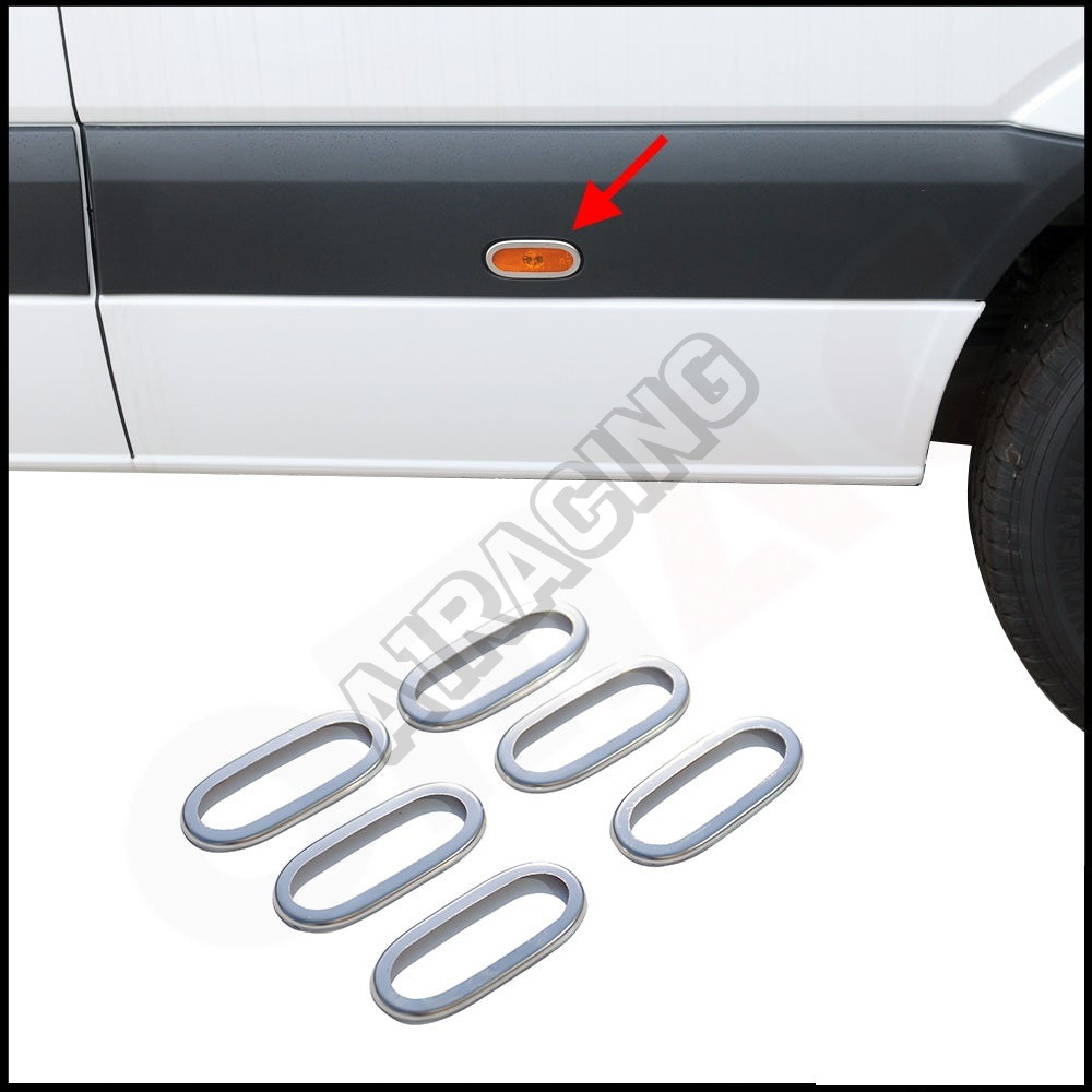 Nerez kryty bočních výstražných světel Omtec MB Sprinter, VW Crafter 2006-18 (6 ks)