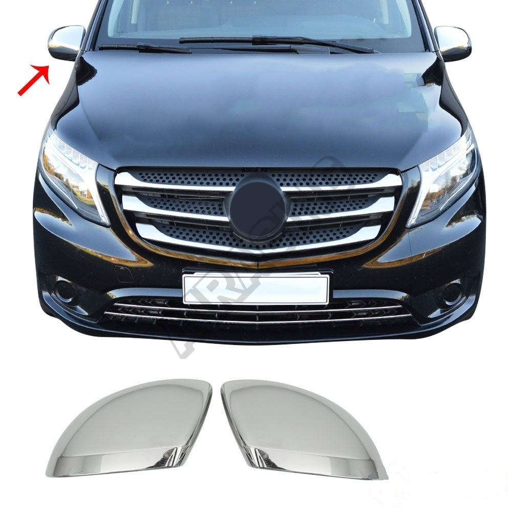 Nerez kryty zrcátek Omtec Mercedes Benz Vito W447 2014-23 - 100% nerez leštěné provedení - přesně